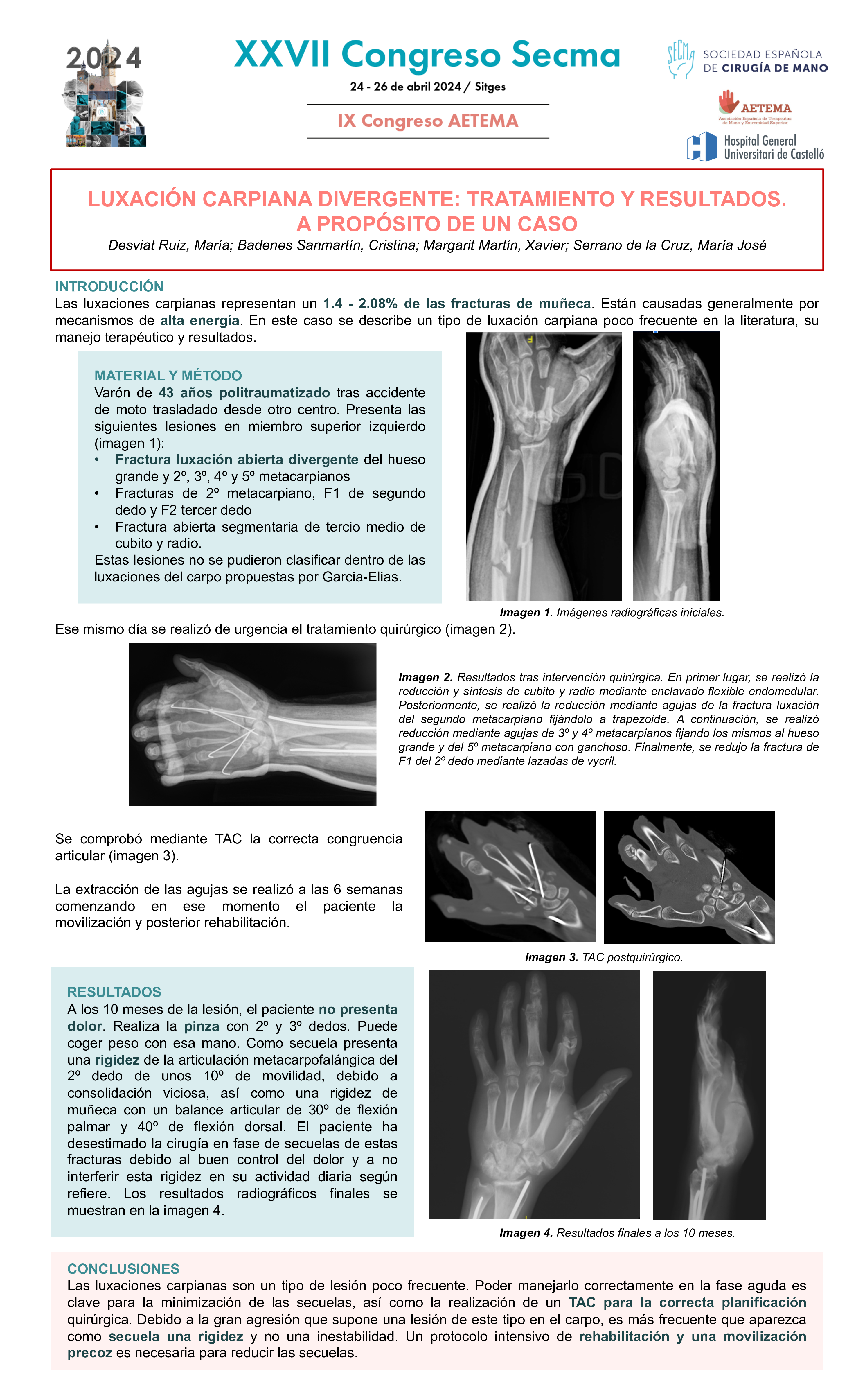 Temática: Comunicaciones sobre Fracturas lesiones articulares e inestabilidades